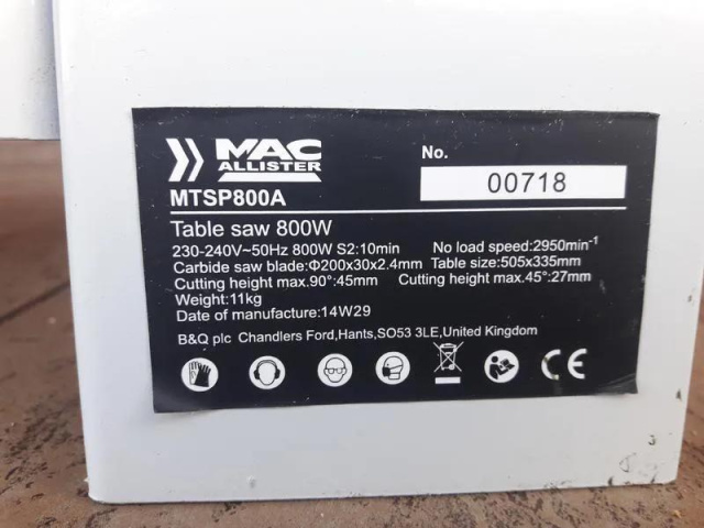 Настільна циркулярна пила MACalister MTSP800A : 800 Вт - 200 мм | Глубина різа - 45 мм