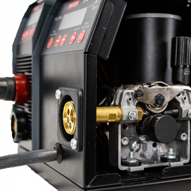 PATON ProMIG-250-15-2 обладнаний якісним металевим механізмом подачі дроту з потужним герметичним двигуном, а універсальний роз'єм KZ-2 типу ""ЄВРО"" дозволяє підключати зварювальні пальники від широкого ряду виробників. Потужний кронштейн під зварювальний дріт дозволяє встановлювати котушки, вагою до 15 кг. Модель ProMIG-250-15-2, в поєднанні з високою потужністю і продуктивністю, має невелику вагу і габаритні розміри. А завдяки РК-екранам апарат легко і зручно налаштувати під рішення будь-якої задачі. Апарат комплектується якісними аксесуарами від компанії ABICOR BINZEL, які дозволяють відразу почати працювати в режимах MIG/MAG та MMA.