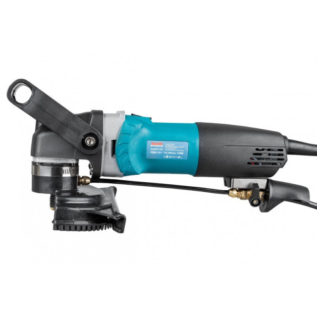Кутові шліфмашини c застосуванням води мають конструктивні особливості. Завдяки подачі води через вал редуктора реалізується подача води на шліфувальний інструмент, що значно підвищує якість оброблюваної поверхні.