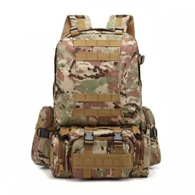 Рюкзак тактичний Smartex ST-002 3P Tactical 55 підходить для риболовів, мисливців та туристів. Завдяки високоякісному матеріалу Oxford 900D зі спеціальним напиленням суттєво зменшує вплив вологи на речі у наплічнику. На передній стороні прикріплена з'ємна сумка з розмірами 33*8*19 см. В неї можна покласти найнеобхідніші речі, які повинні бути під рукою. З бокових сторін рюкзака знаходяться додаткові маленькі підсумки розміри яких складають 17*6*12 см.