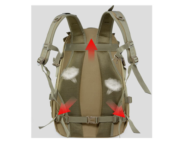 Тактичний рюкзак Smartex можна надійно пристібнути ременями з фастексами до грудного та поясного відділів, зменшивши навантаження на спину.