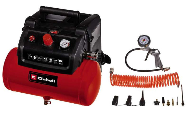 Завдяки цьому мобільному та компактному компресору Einhell TC-AC 190/6/8 OF ви можете виконувати безліч простих робіт, що потребують стисненого повітря, в домашніх умовах, у саду та гаражі або в кемпінгу.