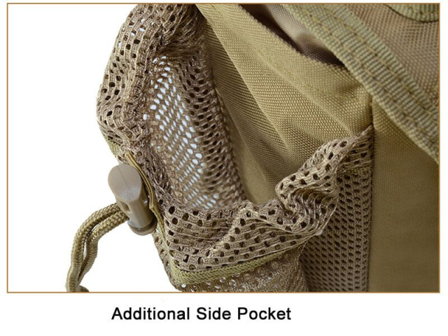 Тактична сумка Smartex має п'ять відділів та дві бокові кишені, одна з яких з сітчастої тканини. З передньої сторони знаходиться липучка - "велкро під патч" для закріплення шевронів та патчів.