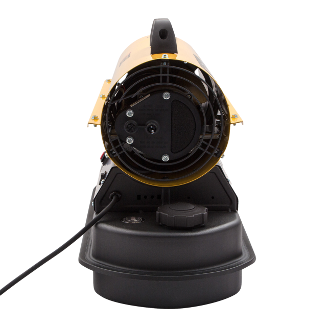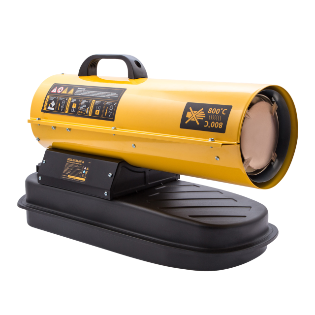 Холодне повітря за допомогою вентилятора надходить у корпус теплової гармати і нагрівається, проходячи через камеру згоряння. На виході ми отримуємо гаряче повітря. Також окремо ви можете придбати термостат для підтримки заданої температури.
