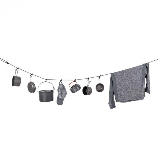 Шнур господарський Naturehike Rope Camping 4м для зручного розміщення посуду, одягу, спорядження. Завдяки карабіну шнур-мотузку легко закріпити на дереві, регулювати довжину, а гачки дозволяють підвісити ваше спорядження. На мотузці можна сушити одяг, посуд, підвісити продукти, щоб уберегти їх від комах і тварин.