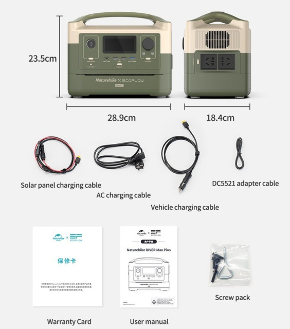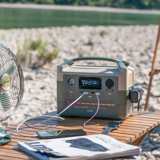 Портативна електростанція Naturehike Ecoflow Max має ємність 720 Ват/годину. Станція заряджається від мережі 220 В, від сонячних панелей або підключення до прикурювача автомобіля 12 В.