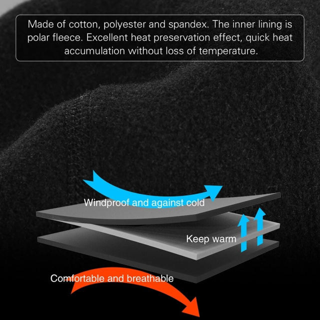 Тканина не пропускає холоду та утримує тепло. На дотик м'яка і зручна, міцна тканина не змінюється, має форму. Виготовлена балаклава з поліестру.