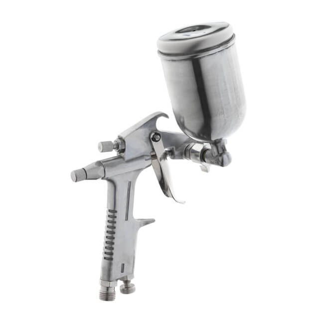 Пневматичний фарбокопульт INTERTOOL PT-0301 відмінно зарекомендував себе як бюджетну модель для проведення фарбувальних, тонувальних та лакувальних робіт на невеликих поверхнях. Він сконструйований за технологією НР (High Pressure), що передбачає використання високого тиску з відносно низькою витратою повітря. Працювати з РТ-0301 зручно та легко за рахунок ергономічності дизайну та простоти конструкції. Краскопульт оснащений металевим бачком ємністю 200 мл, верхнім розташуванням та можливістю регулювання кута нахилу на 360о. Ця модель дуже економічна. При робочому тиску до 5 Атм витрата повітря не перевищує 130 л/хв. Форсунка діаметром 0,5 мм забезпечує рівномірне нанесення ЛКМ плоским та овальним факелом.