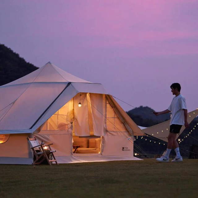 Намет-шатро Mobi Garden ERA Habitat 260 - це ідеальне рішення для відпочинку на природі з родиною та друзями. Завдяки розмірам 420 х 260 см, ви зможете комфортно розмістити всю компанію навіть у непогоду. Надувний каркас з алюмінієвими стійками забезпечує стабільність та стійкість до вітру. Потовщені стійки з авіаційного алюмінію та димохідний канал дозволяють використовувати намет у будь-який сезон. Вісім вікон забезпечують внутрішнє освітлення та вентиляцію. Виготовлений з водонепроникної тканини з обробкою від плісняви. Характеристики: Сфера використання: кемпінг, автомандрівки, пікнік тощо Матеріал даху: 30% поліефірне волокно + 70% ПВХ (PVC) Матеріал стін та підлоги: 65% поліефірне волокно + 35% бавовна (водонепроникність 600 мм, UV50+ і обробка проти цвілі) Сітка: поліефірне волокно Штольня димарної труби: зовнішній шар: поліефірне волокно, внутрішній шар: поліетилен Стійки: алюмінієві на 6 секцій кожна, діаметр 33 мм, висота 2,6 м Загальна кількість секцій стійок: 24 одиниці Відтяжки: 12 одиниць Розмір в розкладеному стані: 420х260х260 см Розмір в складеному стані: 90х46х46 см Вага: 31 кг Колір: білий