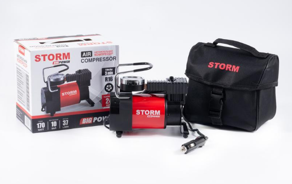 Надійний і недорогий водночас дуже якісний автомобільний компресор STORM підійде для використання в сучасних легкових автомобілях з напругою бортової електромережі 12 вольтів.