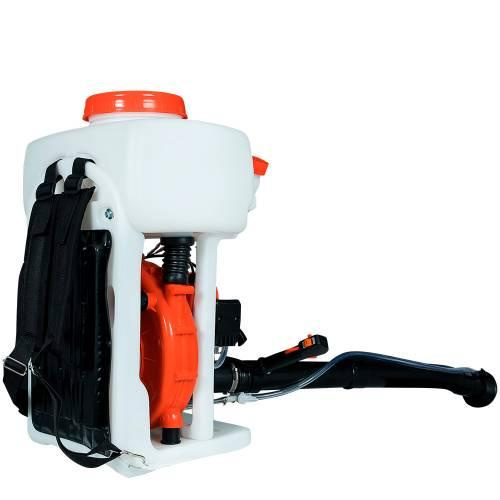 Він працює на базі надійного двотактного бензинового двигуна потужністю 1,25 кВт і обсягом 42,7 куб.см. Обсяг паливного бака складає 1,3 л, що дає можливість обробляти велику площу за один робочий сеанс. Водночас обсяг робочого бака складає 15 літрів, що дозволить працювати тривалий час без зупинки на додаткові дозаправлення.