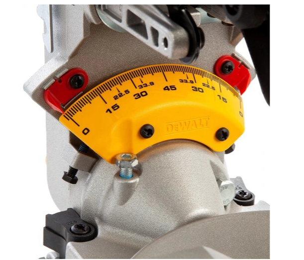 Ковзаючі двосторонні упори надійно фіксують заготівлю. Торцювання ДеВолт має функцію протяжки - пиляльний вузол ковзає по напрямних. Це дозволяє обробити широкі заготівлі. Кут скосу регулюється легко і швидко, надійна фіксація унеможливлює появу дефектів при пилянні. Виготовлена з нержавіючої сталі шкала кутів торцювання гарантує високу точність. Спеціальні упори дозволяють використовувати пилку для різання пазів. Система XPS – визначення лінії різання по тіні від диска – забезпечує високу точність та чудове освітлення робочої поверхні.