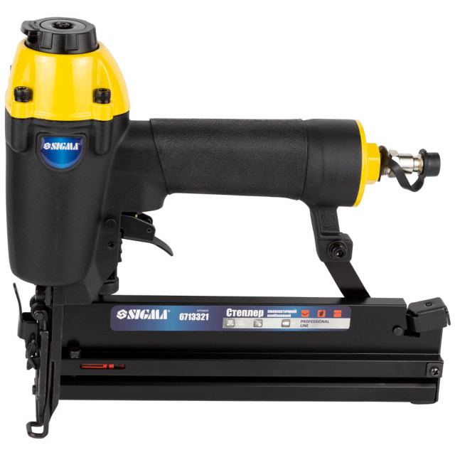 Степлер пневматичний комбінований "Plus" SIGMA (6713321) використовується при виконанні оббивних та столярних робіт. Він призначений для скріплення матеріалів за допомогою цвяхів довжиною 10-50 мм та скоб довжиною 10-40 мм.