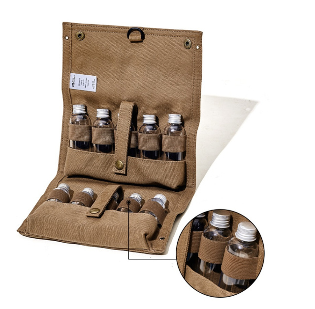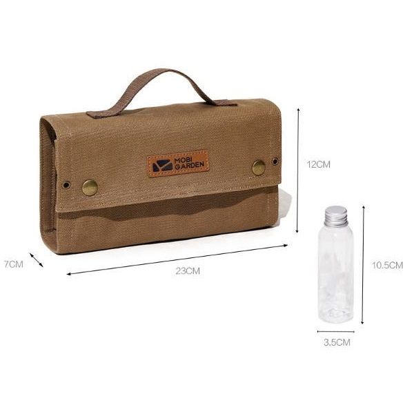 Органайзер від Mobi Garden забезпечує оптимальне розміщення та безпечне перевезення спецій, пропонуючи просторі відділення, кожне з яких може вмістити до десяти флаконів, що входять у комплект. Завдяки використанню міцної бавовняної тканини Canvas, ця сумка вирізняється своєю надійністю та довговічністю, а також простотою у догляді. Компактність органайзера дозволяє з легкістю скласти його для зручного транспортування або зберігання у невикористовуваному стані. Характеристики: Розмір: 42,5х23 см Розмір секції зберігання: 12x7x23 см Розмір пляшки: 3,5х3,5х10,5 см Тканина: бавовна Матеріал пляшки: ПЕТ Кількість пляшок: 10