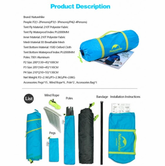 Намет Naturehike P-Series IIII (4-х місний) 210T 65D polyester Graphic NH18Z044-P розрахований на чотирьох осіб. Стане прекрасним придбанням для тих, хто цінує комфорт. Завдяки невеликій вазі і компактності в складеному вигляді, вона займає небагато місця.
