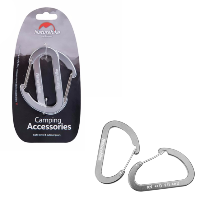 Відмінний карабін Naturehike для кемпінгу, пішого туризму, активного відпочинку. Матеріал: легкий алюмінієвий сплав. За допомогою даного карабіна ви можете закріпити ключі або кухоль, підвісити ліхтарик. Сподобається людям, які цінують в усьому малу вагу. Спеціальна форма карабіна дозволяє карабіна займати правильне розташування. У наборі 2 карабіни.