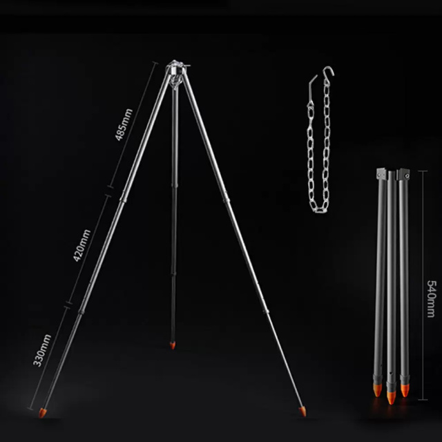 Комплект включає ланцюг для підвішування казана та чохол, який захищає триногу під час транспортування. З вагою лише 1.1 кг, вона ідеально підходить для кемпінгу, походів чи пікніків. Це незамінний помічник для приготування їжі на природі, який поєднує функціональність і зручність у кожній деталі.