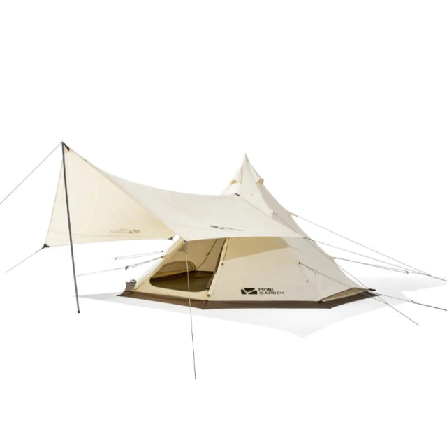 Намет-шатро Mobi Garden ERA Camp 230 White - ідеальне рішення для зимового відпочинку або відпочинку на рівнинній місцевості, де можна насолодитися вітром. Завдяки багатокутному дизайну, намет зменшує вплив вітру з будь-якої сторони, підвищуючи стабільність та надійність конструкції. Конусоподібна форма не дозволяє снігу або дощу накопичуватися на даху. Намет має два входи з вентиляційними сітками для ефективної вентиляції та захисту від комах та попелу. Зовнішній матеріал забезпечує захист від ультрафіолетових променів та вологи. З можливістю поєднання з тентом, цей намет розширює простір для розваг на свіжому повітрі, забезпечуючи захист від дощу. Технічний отвір для димаря дозволяє використовувати дров'яну піч усередині для обігріву та приготування їжі. Характеристики: • Сфера використання: будь-який відпочинок на природі. • Зовнішній матеріал: полібавовна (35% бавовна, 65% поліестер) з покриттям PU2000MM, W/R, UV50+ • Сітка: щільність 20D • Підлога: тканина Oxford 150D, PU4000MM, W/R • Тент: полібавовна (35% бавовна, 65% поліестер) 200G з покриттям PU2000MM, W/R • Стійки: авіаційний алюміній 7001, діаметром 22 мм • Розмір в розкладеному стані: 380х380х230 см • Розмір в складеному стані: 67х29х29 см • Відтяжки: 8 одиниць для намету, 6 одиниць для тенту • Кілки для намету: 10 одиниць (6 мм, 18 см алюміній) + 8 одиниць (8 мм, 25 см залізо) • Кілки для тенту: 6 одиниць (6 мм, 18 см алюміній) • Вага намету: приблизно 12,4 кг • Вага тенту: приблизно 3,3 кг • Колір: білий