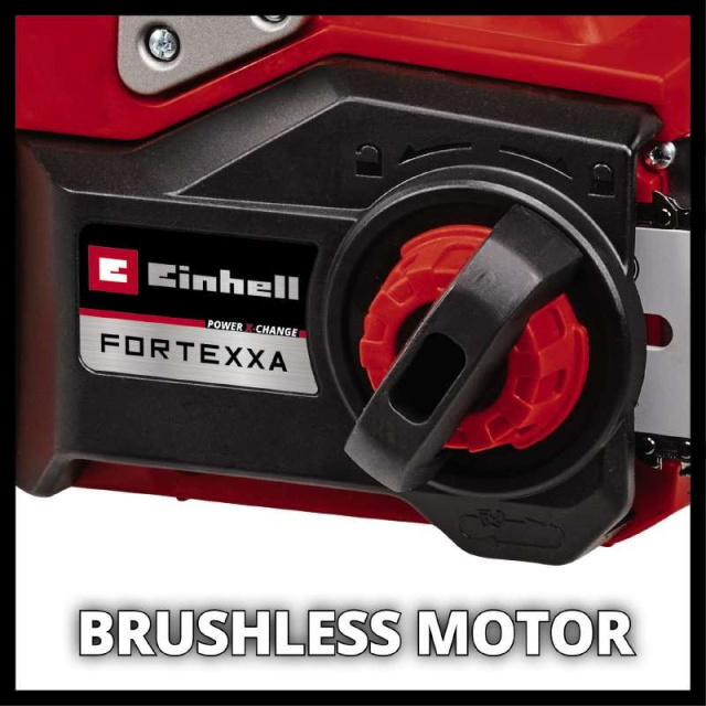Бездротова ланцюгова пилка лінійки Power X-Change System Einhell FORTEXXA 18/30 Li-Solo серії Expert plus призначена для універсального використання для валки, порізки та очищення невеликих дерев від гілок незалежно від наявності електромережі. Einhell FORTEXXA 18/30 Li-Solo має безщітковий двигун для кращої продуктивності та більшого часу роботи в порівнянні зі звичайними двигунами з вугільними щітками. У безщіткового двигуна відсутній будь-який знос від механічного тертя. Завдяки оптимально розділеній вазі та ергономічній конструкції рукоятки ланцюгова пилка Einhell FORTEXXA 18/30 Li-Solo дозволяє пиляти, не відчуваючи втоми, а наявність щитка захисту руки з миттєвою зупинкою ланцюга роблять роботу з пилкою легкою та безпечною. Пила має автоматичне мастило ланцюга, яке подається з 160 мл масляного резервуара з візуальним індикатором наявності олії в баку і зручною великою горловиною для заливки олії. Ланцюг можна легко натягнути та поміняти без використання будь-яких інструментів. Ланцюгова пилка Einhell FORTEXXA 18/30 Li-Solo має високоякісну шину та ланцюг фірми OREGON (USA). Швидкість ланцюга можна регулювати Залежно від виконуваних завдань, це може бути повна потужність або режим Eco. Інструмент поставляється без акумулятора та зарядного пристрою, але може бути приведений у дію за допомогою акумулятора Power X-Change.