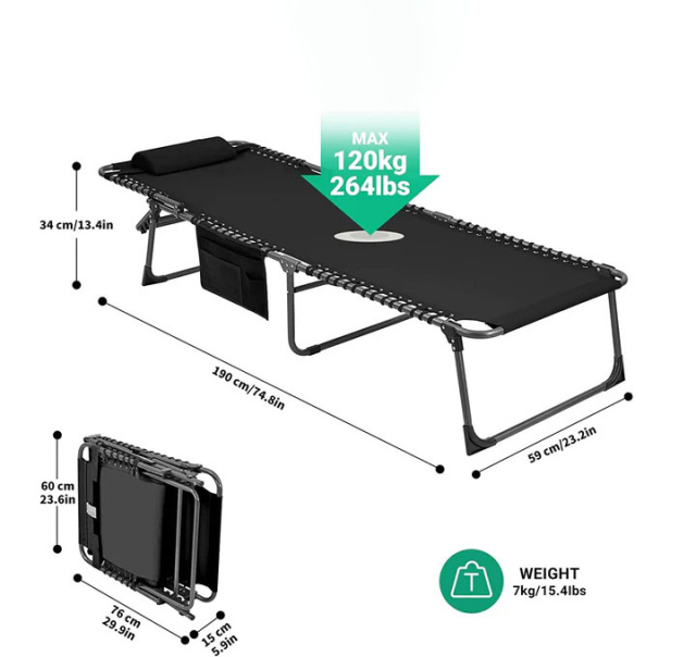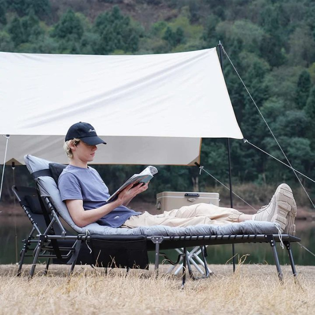 Розкладне туристичне ліжко KingCamp Hamburg Plus — це стильна та надійна туристична розкладачка, створена для тих, хто хоче поєднати комфорт домашнього відпочинку з мобільністю туристичного спорядження. Завдяки можливості регулювання спинки в п’яти положеннях, ви зможете зручно розташуватись як для сну, так і для читання чи релаксу. Один рух — і ваша розкладачка перетворюється на шезлонг або крісло.