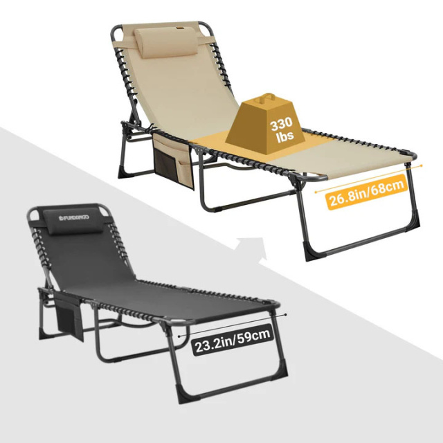 Розкладне туристичне ліжко KingCamp Cool — це універсальне складане ліжко, яке ідеально підходить як для відпочинку на природі, так і для використання в приміщенні. Завдяки можливості регулювання спинки та фіксації у чотирьох положеннях, його можна легко трансформувати в ліжко, шезлонг або зручне крісло.