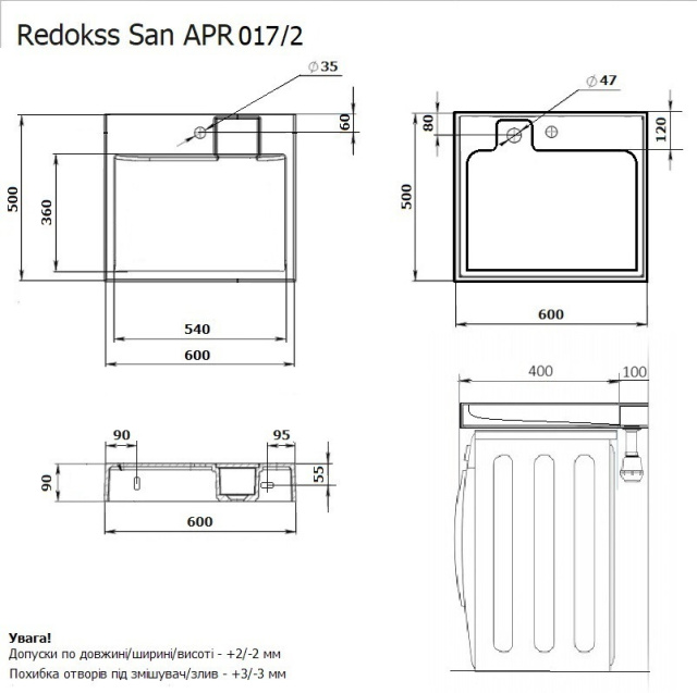 Умывальник из литого армированного акрила Redokss San – надежное решение для установки над стиральной машиной. Прочный материал, удобная форма и современный дизайн обеспечивают комфортное использование в компактном пространстве. Широкий выбор моделей под любой размер стиральной машины.