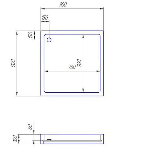Акриловый душевой поддон SANTERNO 900х900