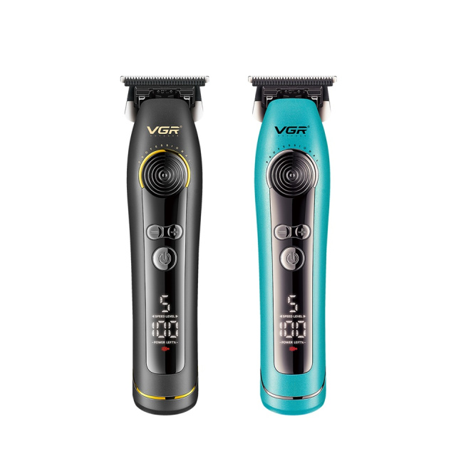 Триммер VGR. Работает от аккумулятором. Заряжается очень быстро и зарядки хватает примерно на два часа работы. Благодаря специальной лазерной обработке лезвия ножевой блок сохраняет остроту в течение длительного периода эксплуатации.