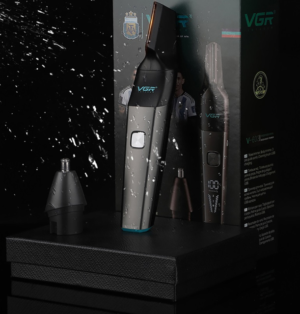 Триммер Vgr V-603. Работает от аккумулятором. Благодаря специальной лазерной обработке лезвия ножевой блок сохраняет остроту в течение длительного периода эксплуатации.