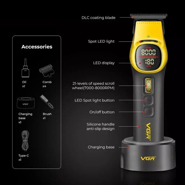 Триммер VGR Триммер VGR. Работает от аккумулятором. Заряжается очень быстро и зарядки хватает на долго. Благодаря специальной лазерной...