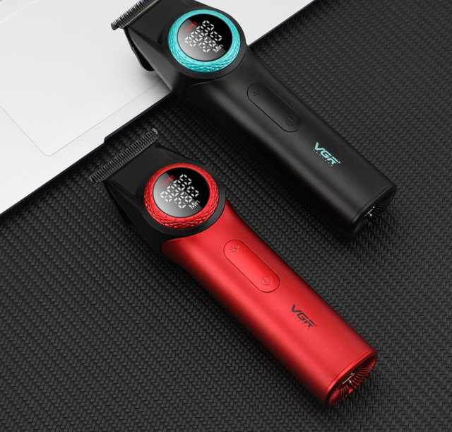 Триммер VGR. Работает от аккумулятором. Благодаря специальной лазерной обработке лезвия ножевой блок сохраняет остроту в течение длительного периода эксплуатации.