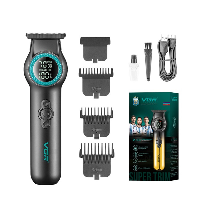 Триммер Vgr V-990 grEEN. Работает от аккумулятором. Благодаря специальной лазерной обработке лезвия ножевой блок сохраняет остроту в течение длительного периода эксплуатации.