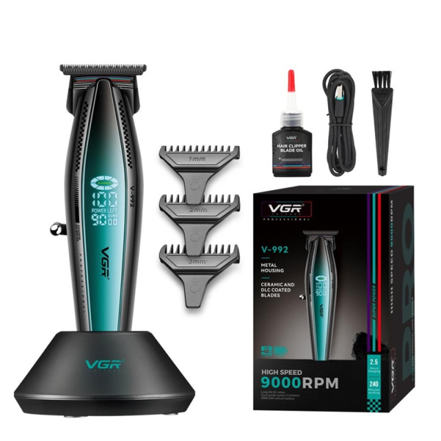 Триммер VGR. Работает от аккумулятором. Благодаря специальной лазерной обработке лезвия ножевой блок сохраняет остроту в течение длительного периода эксплуатации.