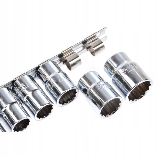 Комплект 12-гранных торцевых головок TOPTUL на планке рекомендован для профессиональных автосервисов и механиков. Отлично сочетается с трещотками, обеспечивая точность и надёжность даже при выполнении сложных работ.