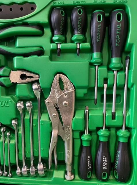 Все размеры инструментов метрические, рукоятки эргономичные и удобно лежат в руке. Набор инструментов Toptul изготовлен из высококачественных материалов, устойчивых к коррозии, что обеспечивает их надёжность и длительный срок службы.