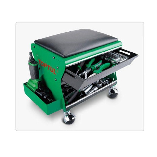 Сиденье автослесаря подкатное TOPTUL JCA-350B 350х260х240мм 3 полки. Одна выдвижная полка для удобства использования, максимальный выдерживаемый вес 120 кг.