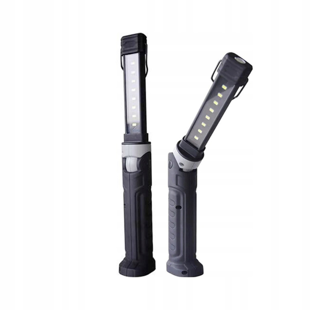 Фонарь SMD-LED оснащён гибким регулируемым плечом, позволяющим изменять угол падения света в зависимости от текущих задач. Благодаря этому пользователь может точно освещать нужную рабочую область. Магнит в основании позволяет легко закрепить фонарь на металлических поверхностях, что особенно удобно при работе, требующей свободных рук.