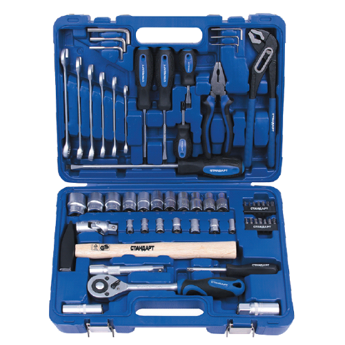 Набор инструментов комбинированный 1/4" и 1/2" СТАНДАРТ ST-0059 из 59 единиц в пластиковом кейсе.