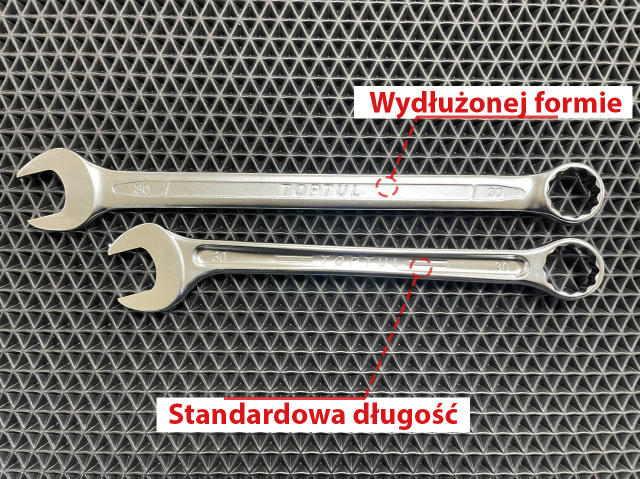 Комбинированные ключи удлинённой формы — ключевая особенность набора, отличающая его от стандартных инструментов. Благодаря этому решению ключи позволяют легче добираться до болтов и гаек, расположенных глубже или в труднодоступных местах. Удлинённая форма обеспечивает больший рабочий диапазон, что является неоценимым преимуществом при сложных ремонтных и монтажных работах.