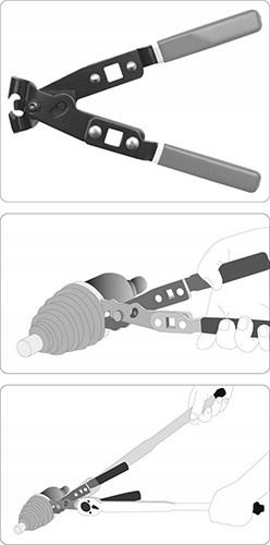 Клещи предназначены для работы с хомутами типа «ear» (с ушком), обеспечивая их точное обжатие или выравнивание. Благодаря прочной конструкции и эргономичному дизайну инструмент отлично подходит для автосервисов и технических мастерских.