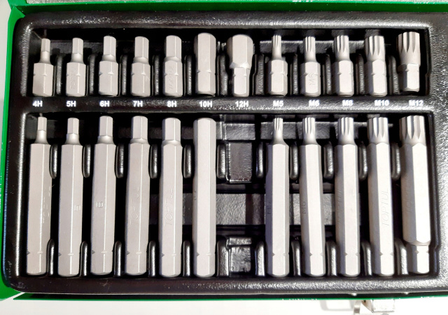 Профессиональный набор бит (40 штук) с профилями TORX, IMBUS, SPLINE, предназначенный для монтажа и демонтажа резьбовых соединений с соответствующими внутренними шлицами. Биты широко применяются как домашними мастерами, так и профессионалами в сервисных мастерских и автосервисах.