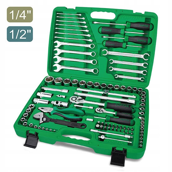 Универсальный набор профессионального инструмента TOPTUL GCAI9601, состоящий из 96 элементов, в прочном фирменном кейсе.