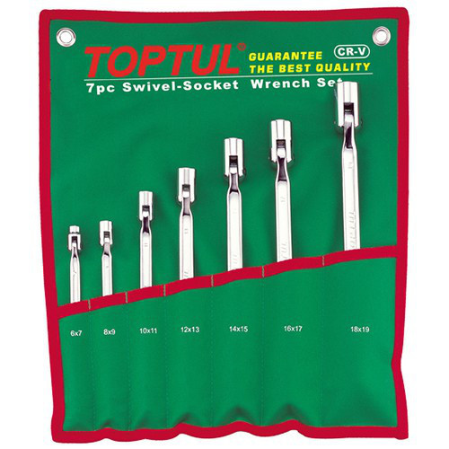 Набор шарнирных ключей колокольчиков TOPTUL 7 шт. 6-19 мм GAAA0704 - 6х7, 8х9, 10х11, 12х13, 14х15, 16х17, 18х19 зеленый чехол