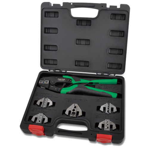 Набор для обжимки клемм универсальный TOPTUL GAAI0704. Уникальная конструкция механизма клещей обеспечивает полную обжимку. Храповый механизм упрощает работу и экономит время. Быстрая смена вставок без применения какого-либо инструмента. Эргономичная удобная рукоятка. Качественный набор инструментов для обимки клемм, пригодный для электриков различных специализаций.