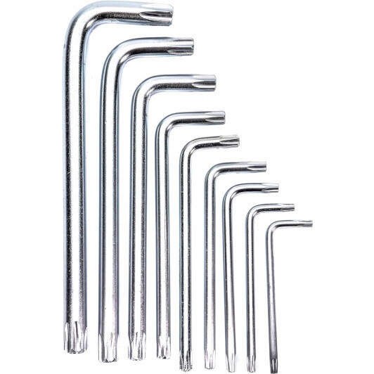 Набор ключей TORX с отверстием STANDART TKS0901 — это практичный набор ключей, который идеально подходит для мастерской и для различного рода ремонтов. Набор состоит из 9 ключей, изготовленных из высококачественной стали CR-V, что обеспечивает им исключительную долговечность и устойчивость к износу.