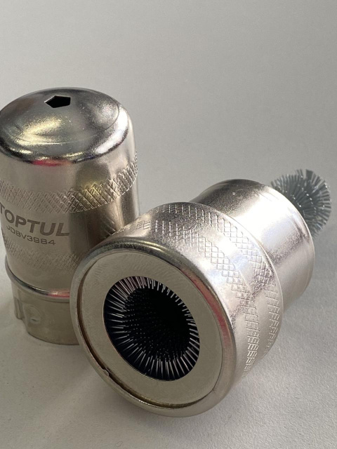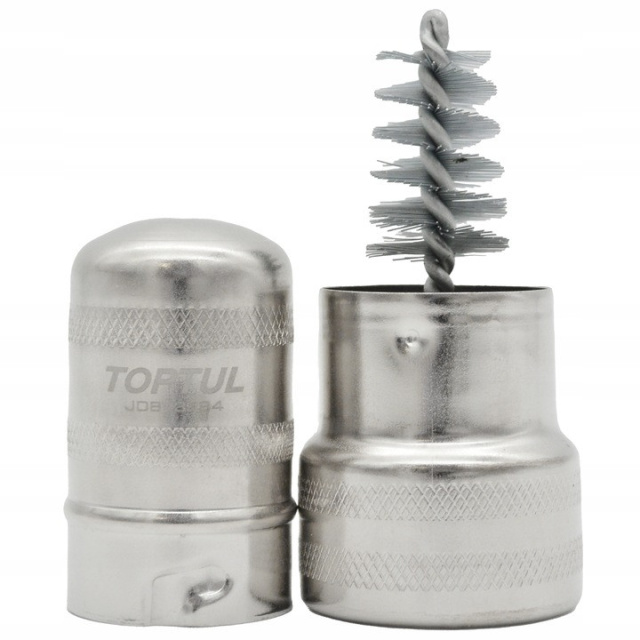 Инструмент для очистки клем аккумулятора Toptul JDBV3984 длиной 84 мм оснащён металлическим корпусом и двумя проволочными щётками: внутренней и внешней. Внутренняя щётка предназначена для очистки концов полюсов аккумулятора, а внешняя идеально подходит для зажимов проводов. Благодаря высокому качеству изготовления инструмент обеспечивает эффективное удаление коррозии и улучшение электрической проводимости.