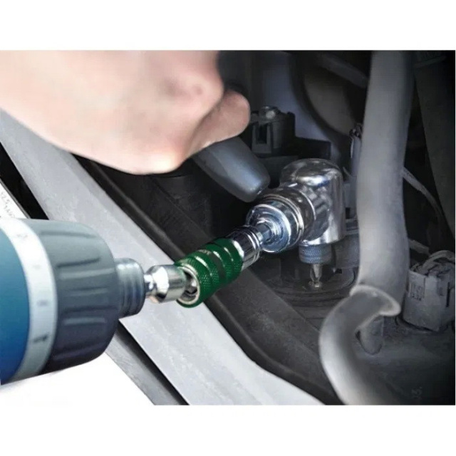 Угловой адаптер используется в автомастерских, при ремонтно-строительных работах и в бытовом использовании. Идеален для работы с шуруповертами, дрелями и оснасткой 1/4" (HEX) там, где важны точность и удобство в ограниченном пространстве.