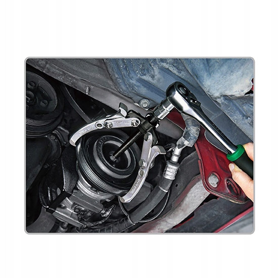 Съёмник подшипников TOPTUL JJAL0308 8" — профессиональный инструмент, предназначенный для демонтажа различных подшипников. Три поворотные лапы имеют изогнутую рабочую часть, что обеспечивает надёжную фиксацию демонтируемого подшипника без риска проскальзывания. Корпус лап выполнен из прочной хромо-ванадиевой стали. Конструкция съёмника оснащена винтом подачи, на который передаётся усилие от «обратного молотка», что обеспечивает плавное и мощное сжатие детали. Резьба на винте подачи позволяет регулировать глубину захвата. Инструмент применяется в машиностроении, автомобильных мастерских и сервисных станциях.