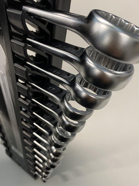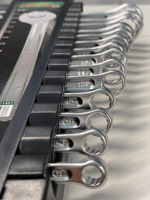 Набор содержит 14 ключей размером от 6 до 24 мм (6, 7, 8, 9, 10, 11, 12, 13, 14, 15, 17, 19, 22, 24 мм).