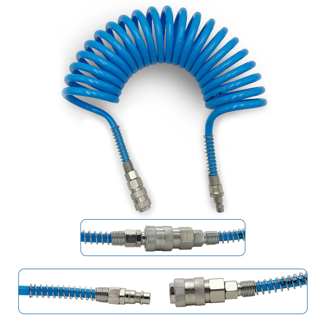 Уникальная особенность данного сжатого шланга — технология производства, которая не позволяет ему раскручиваться. Даже в свободном состоянии шланг сохраняет спиральную форму. Это делает его компактным и удобным для хранения. Пользователю не нужно беспокоиться об укладке — после использования шланг автоматически возвращается в спираль.